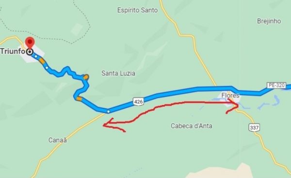 O trecho fica entre o Portal de Triunfo, ligação com a PE 350 e a cidade de Flores.